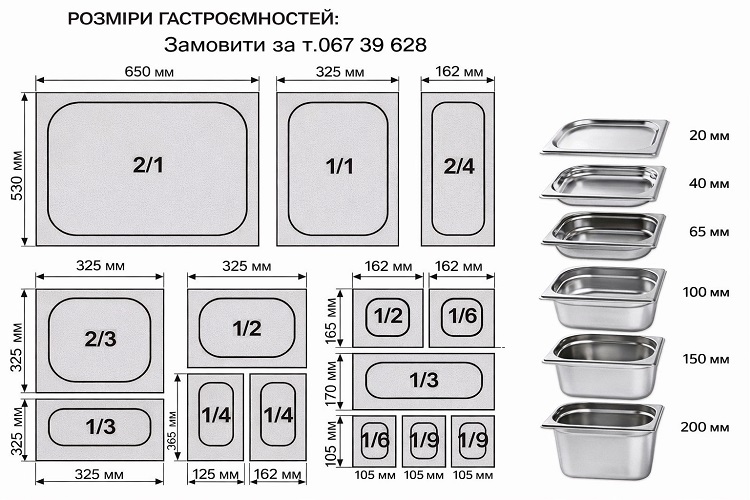 Також доступні гастроємності з нержавіючої сталі GN 20–200 мм — для гарячих та холодних страв.